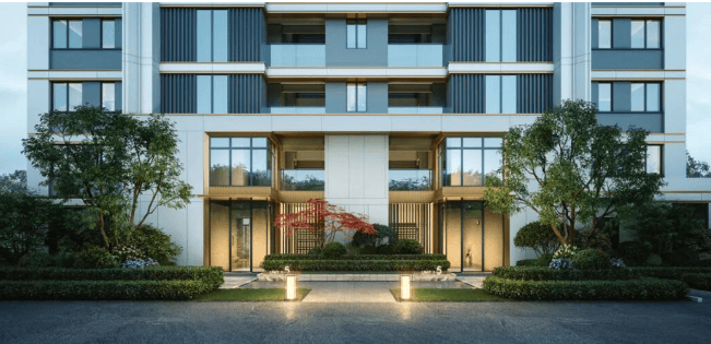 建筑设计:采用全系铝板建筑立面,搭配香槟金线条和塔冠,搭配三玻两腔隔音玻璃,外立面质感高端,历久弥新;建筑布局注重采光和通风,部分户型为一梯两户设计,提升私密性和得房率。