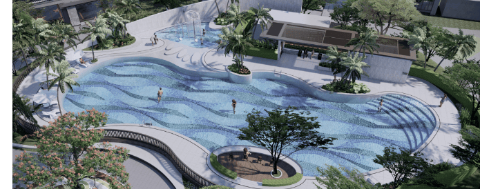 社区配套:配建约1753㎡邻里商街,满足日常生活需求;规划围合式超大央景花园、超500㎡阳光泳池、全龄架空层,营造社区活力生活场景