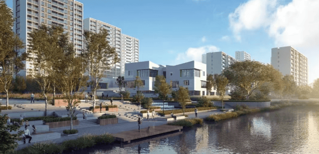 小区规划:项目沿河而建,打造甄稀滨水景观带,内部有经典特色园林、蓝宝石水系、景观示范区、多元架空层等。还配建社区幼儿园、商业区域以及建筑面积不少于 3000 平方米的农贸市场等,满足居民日常生活需求。