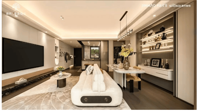 建筑设计:打造约 80 米归家礼遇界面,拥有城市封面级鎏金塔冠立面,呈现出内外兼修的奢华质感。