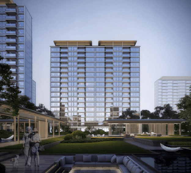 美学设计:奢阔府门(宽60米、高7米)、下沉庭院会所、架空层会所,融合东方雅韵与现代美学。