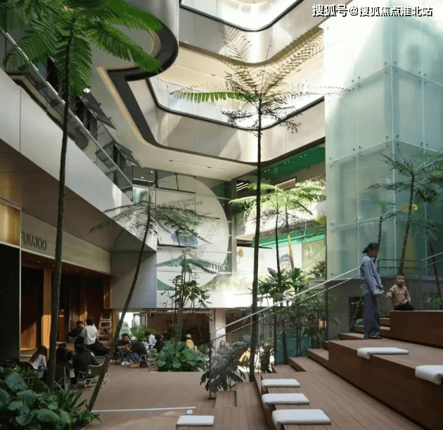 建筑风格:凝聚着类似曼谷 The Commons 等东南亚社区商业的 “热带松弛感”,通过弧形延伸的外街、高低错落的热带绿植、可上可下的阶梯设计等,营造出独特的 “层次感” 和 “热带小秘境” 氛围。