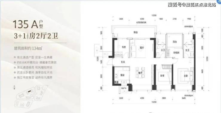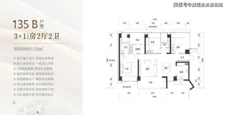 135㎡为B户型横厅格局
