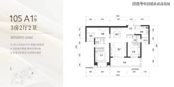 105㎡有两个户型,分别为A1双龙抱珠以及B户型传统竖厅