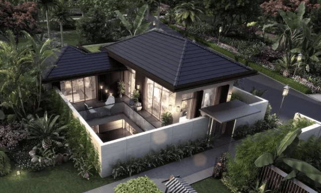 采用新亚洲建筑风格,精心选用金属质感的陶瓦构筑屋顶,葡萄牙米黄哑光石材铺就外立面,勾勒出 “素墙黛瓦” 的东方意蕴。