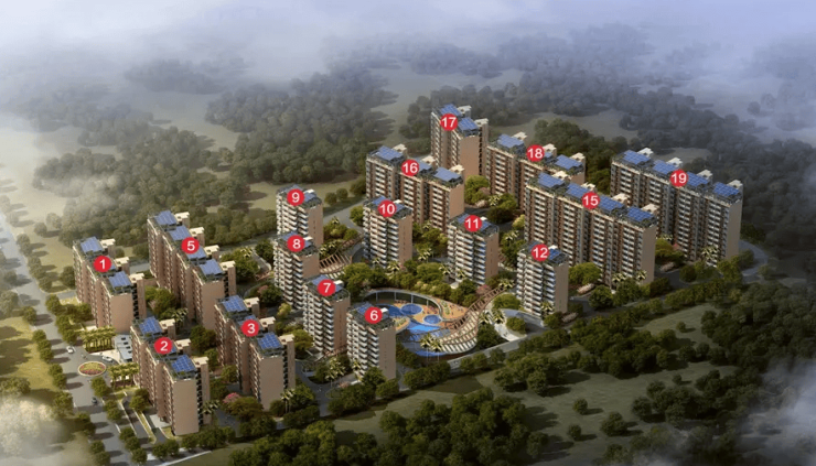 建筑布局:由 14 栋 9 层及 2 栋 12 层板式住宅楼组成,总户数 691 户。