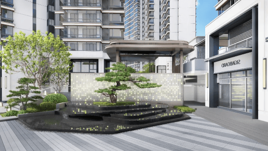 项目紧邻海甸溪,拥有一线水景资源,周边设有水岸休闲长廊、步行道等生态设施。同时,项目规划园林景观,以“滨水”为主题打造多层次立体花园,融合自然元素与现代设计,营造宜居环境。