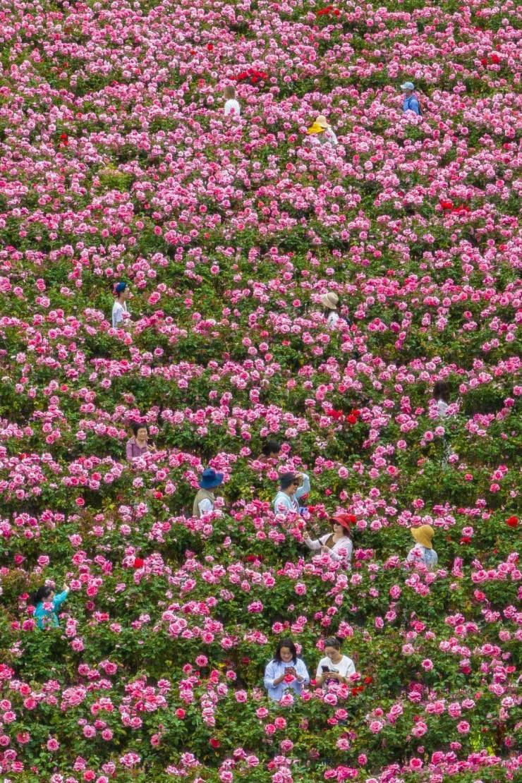 游玩:开放时间 08:00–17:30;核心景点有玫瑰花海、爱情长廊、玫瑰文化体验馆、玫瑰产品市集(精油、鲜花饼等);可乘小火车、热气球俯瞰花海