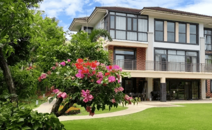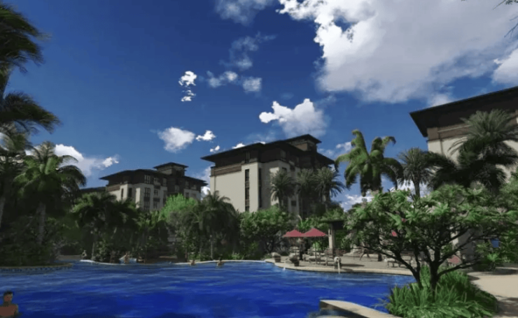 周边配套:项目背靠东山岭,紧邻 4A 景区兴隆热带花园,邻近石梅湾,周边还有世界上仅存的两片青皮林之一,自然资源优越。此外,距离神州高铁站约 6.6 公里,交通较为便利。