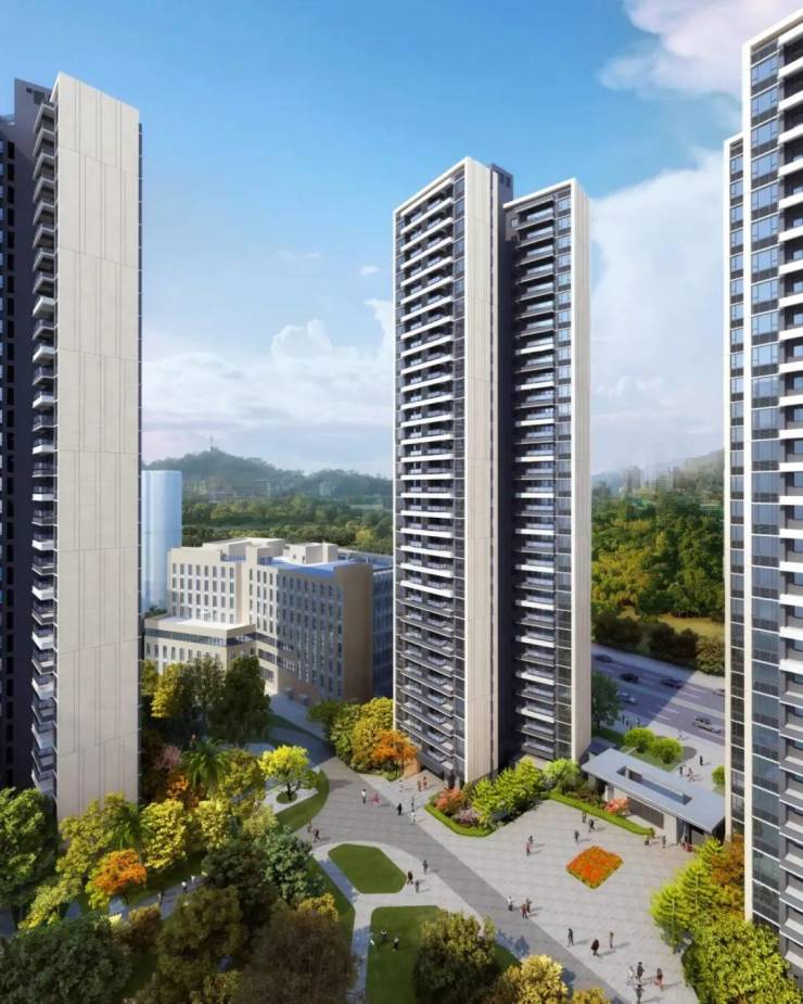 园林景观方面,有 44% 的高绿化率,约 500 米园林中轴,打造了 11 大主题景观。