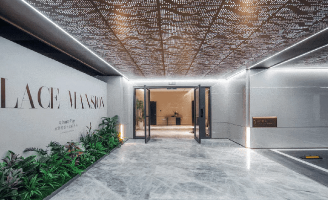 建筑外观:采用现代美学与铝板立面设计,多飘窗和阳台打造出高窗墙比,社区入口融合酒店风格与艺术设计,地上地下双精装大堂。