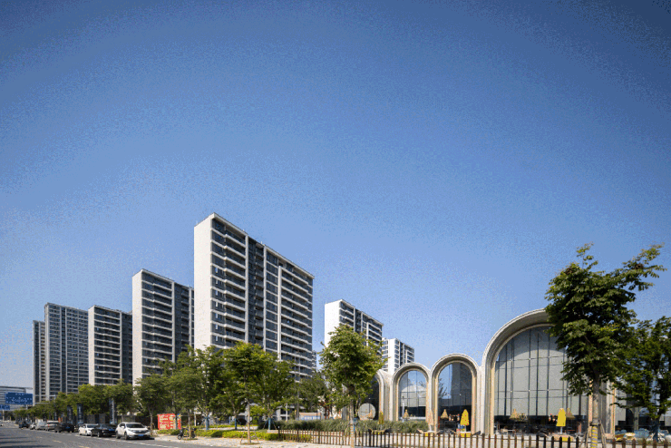 项目特色:项目采用大开放小封闭的组团式空间布局,规划住宅、MALL 和商业街三大业态,构筑总建面约 50 万方的滨水复合住区,让社区与城市融合,建筑、景观、水系和商业交相辉映。