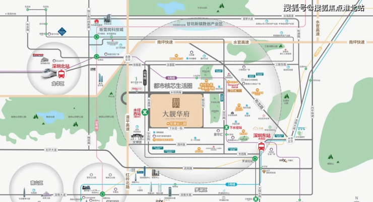 位于龙岗区吉华街道华龙路与水径路交汇处东南侧,地处布吉水径板块,项目紧邻清平高速入口,30分钟直达福田CBD及东莞松山湖,是深莞融合的桥头堡。周边规划约24万平方米城市更新项目,包括星河旧改等,未来将形成“工业上楼+生态居住”的复合社区,但现阶段以工业区和待开发地块为主,城市界面升级需5-8年。此外,项目西侧毗邻银湖山郊野公园,生态资源优越,是深圳低密度生活区的一部分。