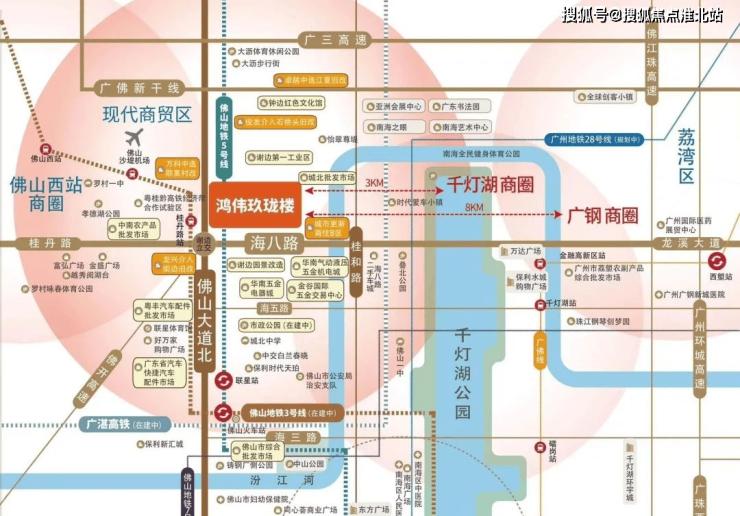4、立体交通路网:佛山大道、桂丹路5分钟可达广州及禅桂核心,1分钟上沈海高速可无阻畅行广佛,佛山地铁3号线、5号线、广州28号环线临经;