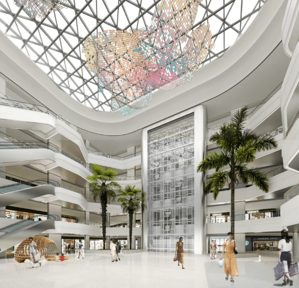 基本信息:2023 年 12 月 10 日正式开业。建筑面积约 10 万平方米,通过玻璃幕墙设计、1200 平方玻璃穹顶主中庭引入自然光作为主照明,还打造了面积 4000 平方米的外广场,并设有潮音喷泉和大面积绿植。