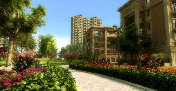园林景观:以欧式皇家园林为设计理念,中央景观轴以水为核心,搭配景墙跌水、木栈曲道、景观树池等元素,绿化率达48%,种植数百种名贵花草树木,营造出优雅尊贵的居住氛围。
