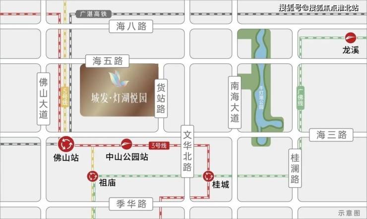 项目位于灯湖中央活力区、佛山站TOD核芯,海五路已通车,约3KM畅达千灯湖,约1.5KM(直线距离)广湛高铁佛山站,1站到广州越秀,速达湾区各城,约700米(直线距离)3号线中山公园站(年中通车),3站桂城8站荔湾,通勤出游皆从容。