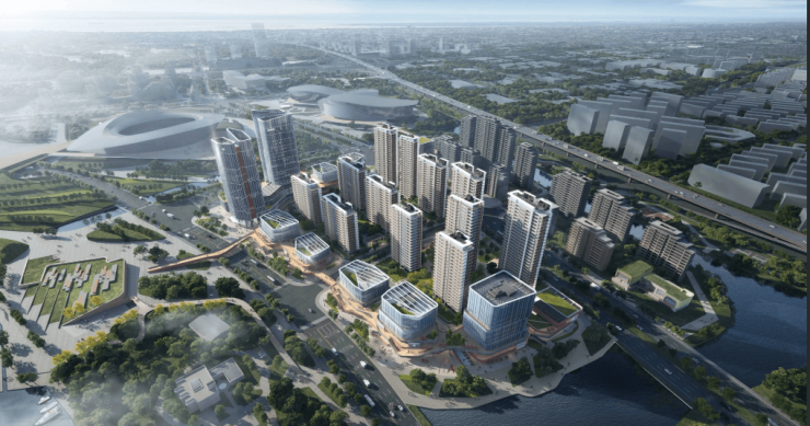 商业生态:自带滨江商业街区及北侧社区商业,周边还有江北恒一广场、万达广场、高鑫广场等成熟商圈。生态资源优越,西邻 24 万方奥体公园,毗邻 26 万方滨江公园,周边还有规划的约 72.3 公顷姚江北岸滨江绿化带,且紧邻宁波奥体中心,兼具休闲健身与观赏赛事、演出的需求。