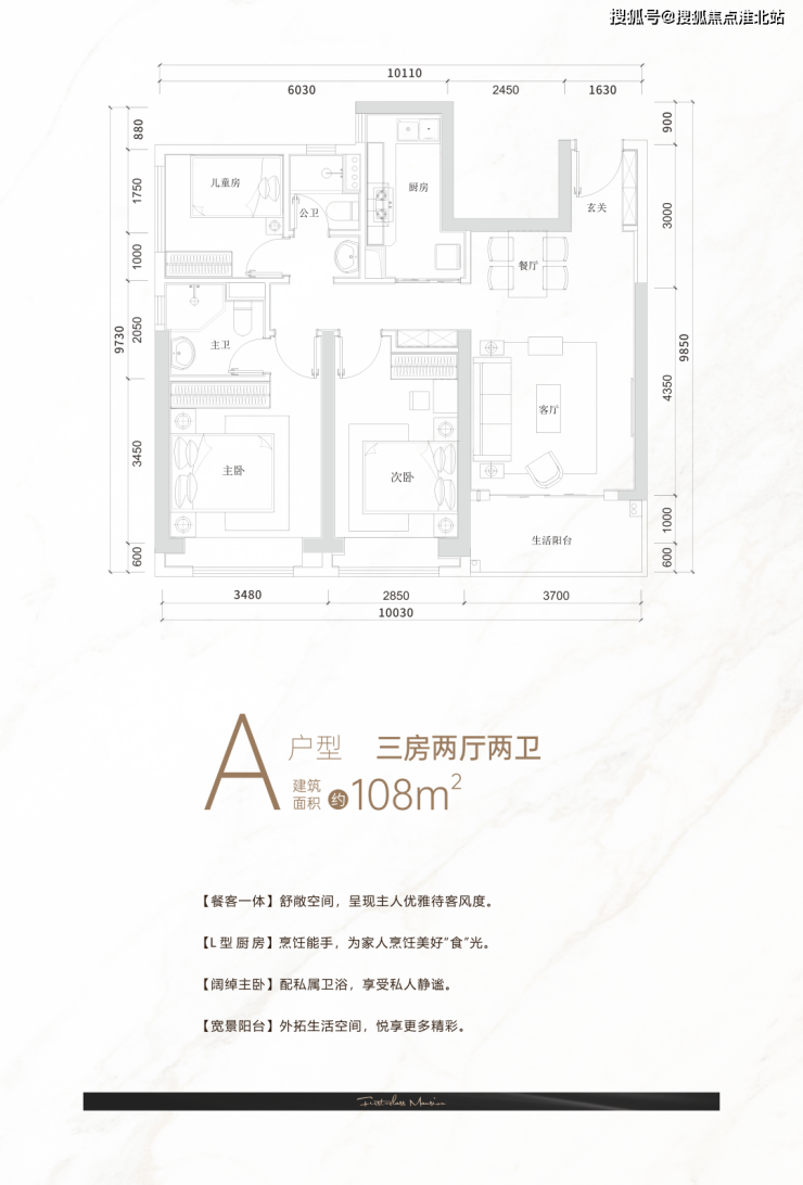 项目匠心筑优品、以初心致生活,为城市箐英量身打造建筑面积约108-122㎡品质三房,低公摊设计、人性化体验,各空间比例合理,彰显设计者对房型的用心把握,对日常生活细节的专注。明厨明卫明厅,全明设计,甄选方太、箭牌、西蒙同等档次品牌品质家装,犒赏人生。