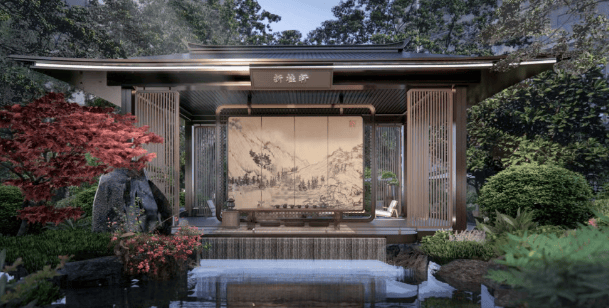 园林设计:西区以顺德清晖园为蓝本,融合岭南园林元素,打造全龄功能场地与主题架空层。