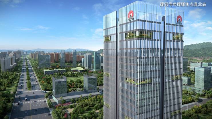设计灵感:以传统礼器玉琮为建筑造型灵感,银灰色外立面配合环保双层玻璃幕墙彰显现代感,裙楼采用横向波浪状律动线条,呈现从层叠涌动的银色海浪中拔地而起的视觉效果。