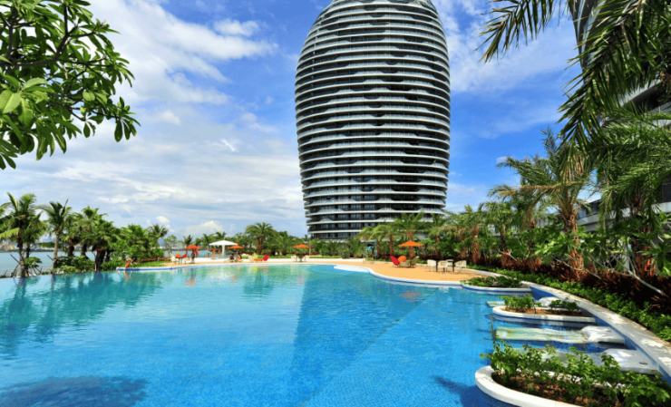 规模指标:全岛占地 36.5 公顷(547.5 亩),总建面约 40 万㎡;5 栋 121 米 “风帆” 地标超曲面建筑;A/B 栋为整栋产权式酒店,C/D/E 栋散售现房公寓;容积率、绿化率适配海岛度假定位,车位充足,全现房即买即住可办产证;