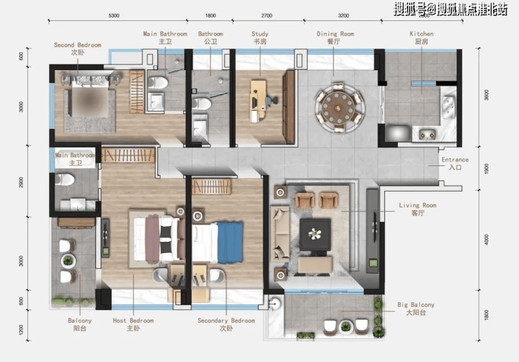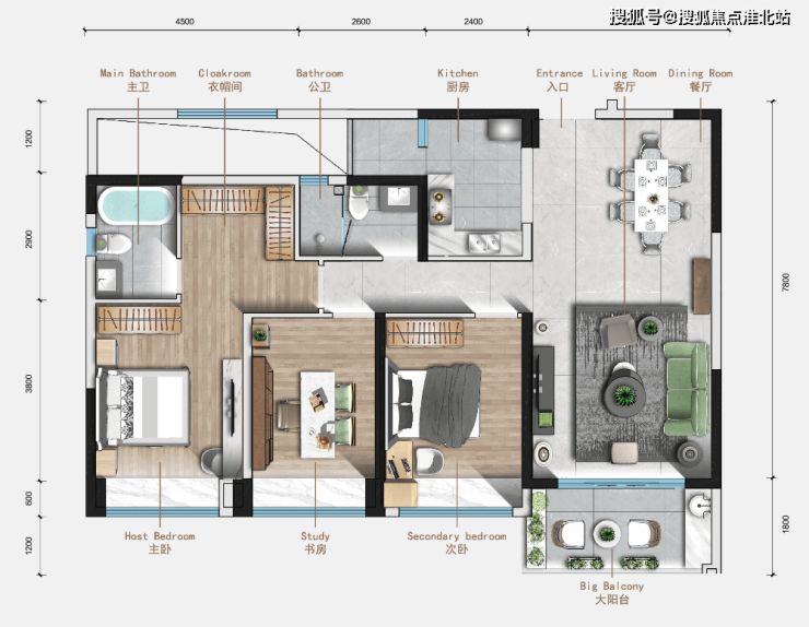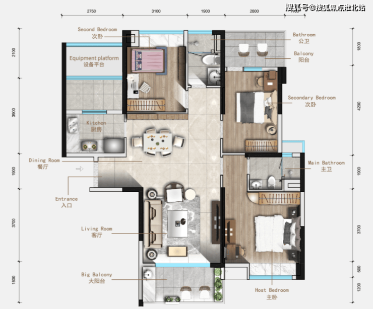 主卧独立生活阳台设计,交房时空间拓展又可以保证私密性