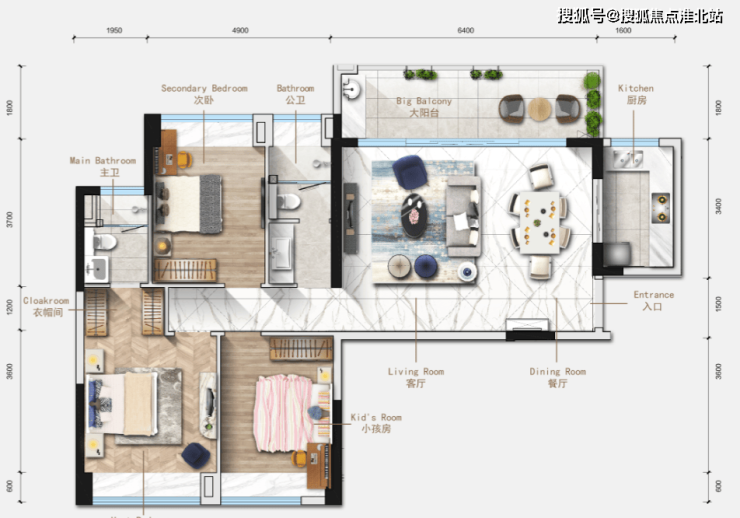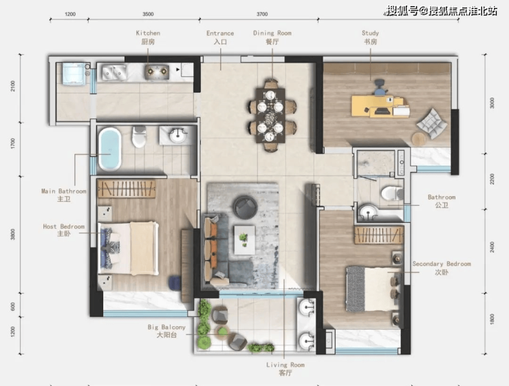 21.35㎡超大起居空间(3.7m面宽,7.6m进深)