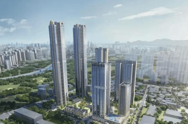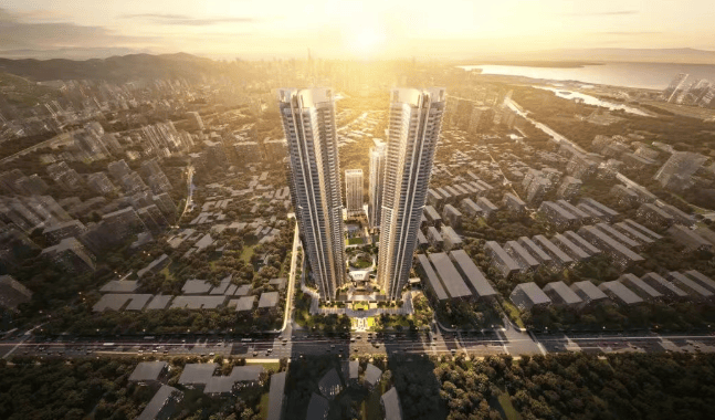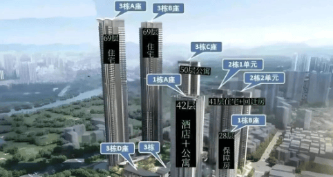 项目概况:总占地面积约 4.2 万㎡,总建筑面积约 39 万㎡,分两期开发。一期总占地约 1.72 万㎡,总建筑面积约 22 万㎡,包含两栋,其中 1 栋住宅(分 AB 单元),另外一栋是连座的公寓、酒店、保障房。二期总占地约 2.5 万㎡,计容总建筑面积 16.9 万㎡,由一栋 4 座组成,其中 3A、3B 高达 252 米。