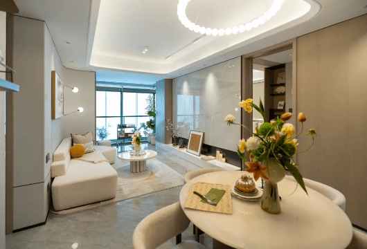 全屋精装交付,配备百朗新风、松下地暖与中央空调,厨房配置方太或老板品牌厨电,卫生间采用高仪或科勒智能马桶。