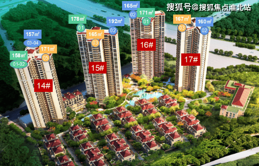 洋房:14 号、15 号、17 号住宅楼,均为 32 层,以 142-192㎡高层经典户型为主,户型方正,南北通透,均为 “N+1” 高赠送设计。目前主力在售约 157-171㎡臻装四房。