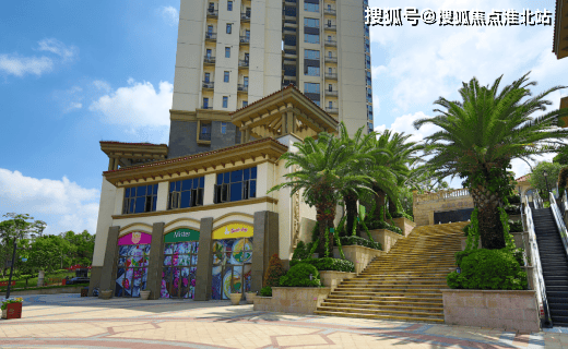 园林景观:采用意大利台地风情园林设计,有进口加拿利海枣树,配搭加那列海藻、华盛顿葵花点缀,整体绿化率超过 30%。设有 9.2 米阶梯式主入口、休闲平台、跌落水景、无边际泳池等,打造出 5 层园林景观。