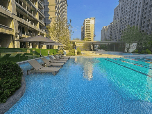 生活配套丰富:实景呈现园区景观、下沉式商业街、业主食堂、室内游泳馆、篮球馆、羽毛球馆、健身房等,部分配套已投入使用,提升生活便利性。