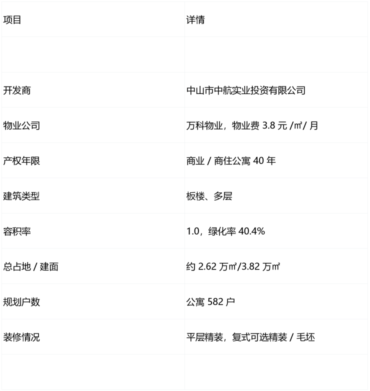 港航汇是中山火炬开发区的低密商业公寓项目,由港航集团旗下中山市中航实业投资有限公司开发,主打 30-40㎡小户型,万科物业,现楼交付,自住与托管皆宜。以下是详细介绍: